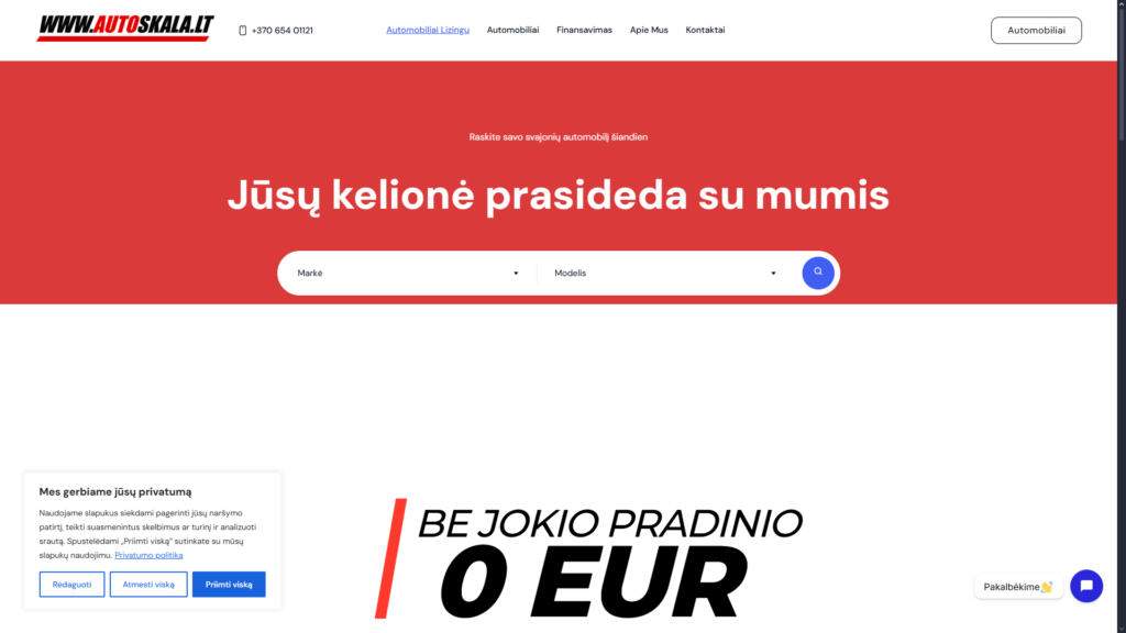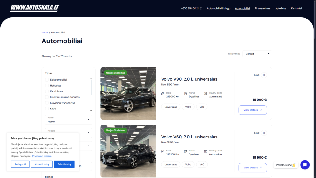 Sukūrėme svetainę naudotų automobilių salonui Autoskalа. Projektas skirtas patogiai pristatyti siūlomus automobilius ir užtikrinti sklandžią paiešką klientams.