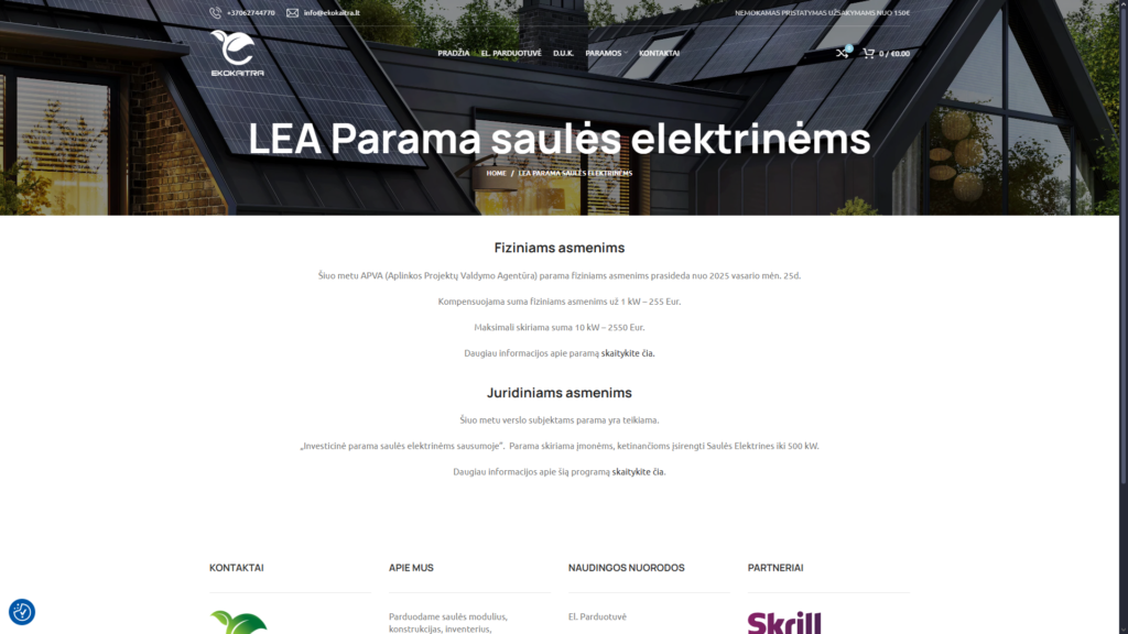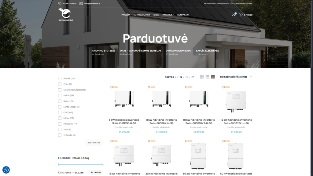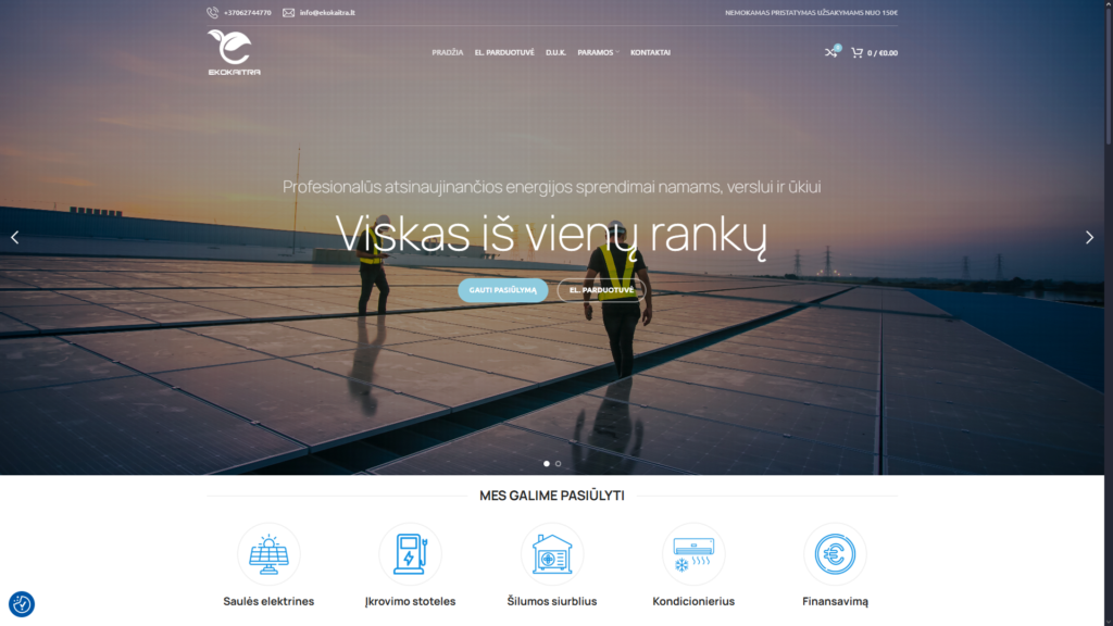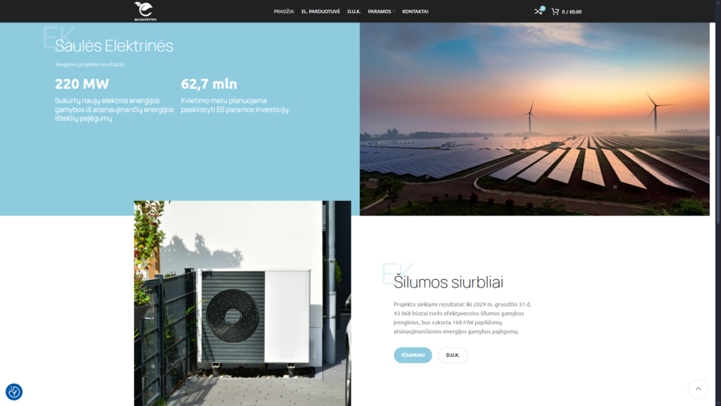 Įmonė, prekiaujanti atsinaujinančios energijos sprendimais – šilumos siurbliais, boileriais, ventiliacijos sistemomis, saulės baterijomis bei elektromobilių įkrovimo stotelėmis. Sukūrėme modernią ir patogią svetainę, pritaikytą produktų pristatymui ir klientų paieškai internete.